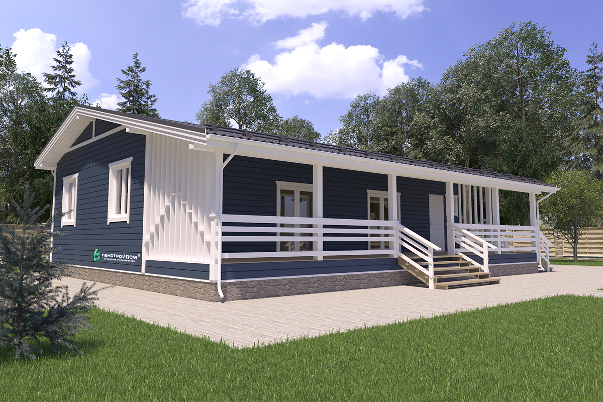 Особенностью домов построенных по этому проекту является огромная терраса 13х3 м, площадью 39 м2, обрамленная ограждением в скандинавском стиле. Которая является скорее полноценной крытой зоной отдыха, чем просто террасой. Еще одна фишка — это большие окна в пол, которые одновременно являются выходом на террасу из комнаты отдыха.