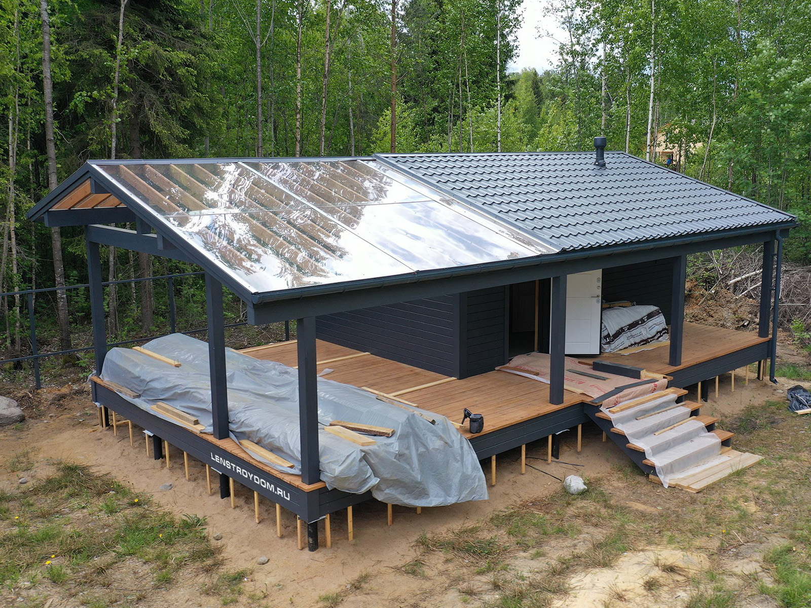 Закончили строительство объекта в СНТ "Надежда", Кировский р-н. В этой локации наша компания строила одноэтажную каркасную баню с основой 4х6 и просторной террасой 36 кв. м.