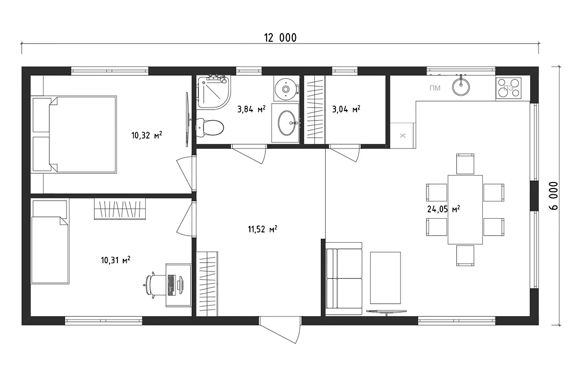 «Дом Леонида» - в основе дома два продольно совмещенных «сканди-мини», со всеми