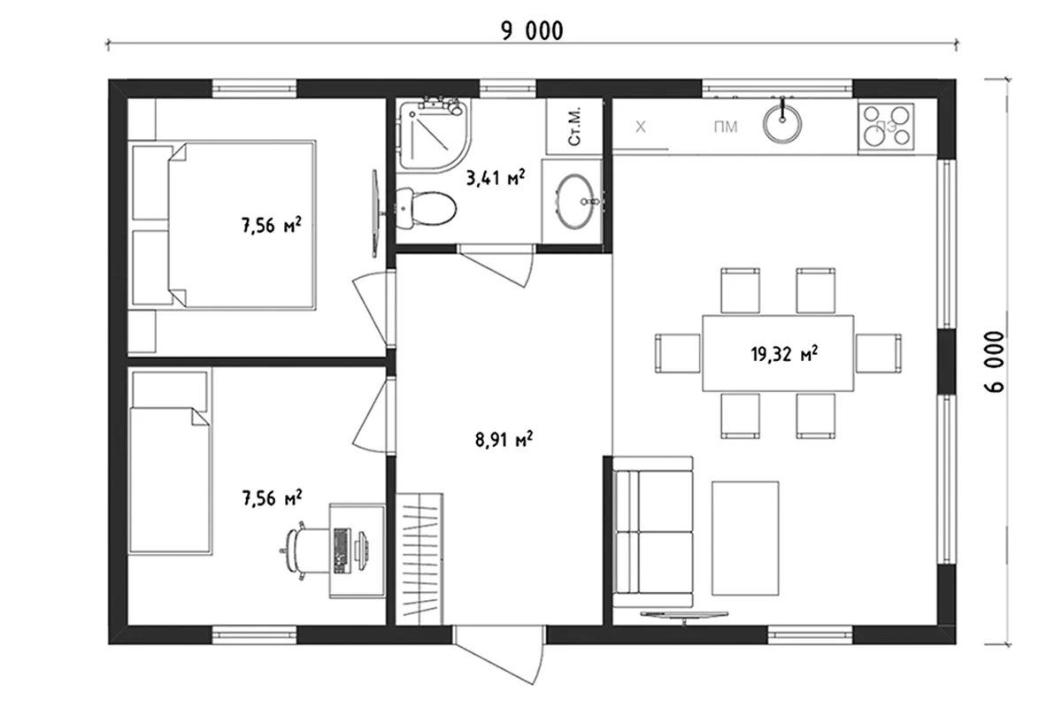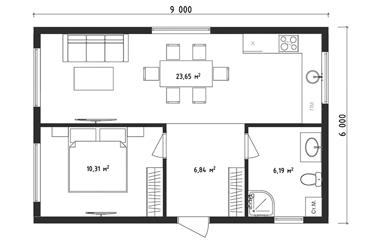 Небольшой каркасный дом на основе нашего популярного проекта «СКАНДИ-МИНИ 6х9 м»